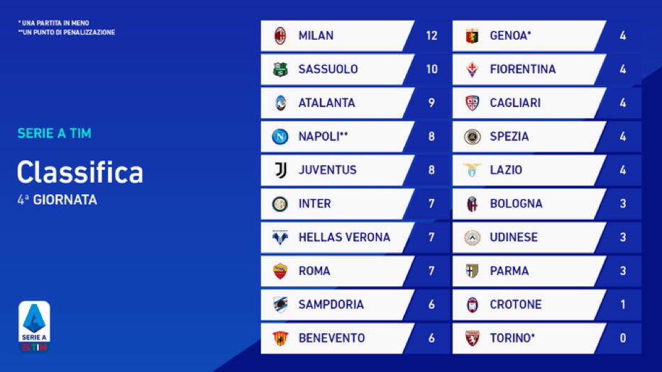 Lega Serie A The Updated Standings After 11 Serieatim Facebook
