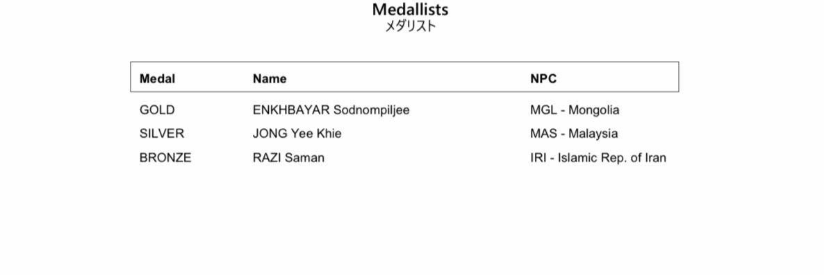 Jong yee khie asal. Peserta pilihan yang juga pemegang rekod dunia Enkhbayar Sodnompiljee dari Mongolia membawa pulang. Fatou Agbayani - Cielo Lindo Dr El Paso Texas. KUALA LUMPUR Atlet powerlifting negara Jong Yee Khie membawa khabar gembira apabila meraih pingat perak dalam kelas 107kg lelaki di Paralimpik Tokyo hari ini.